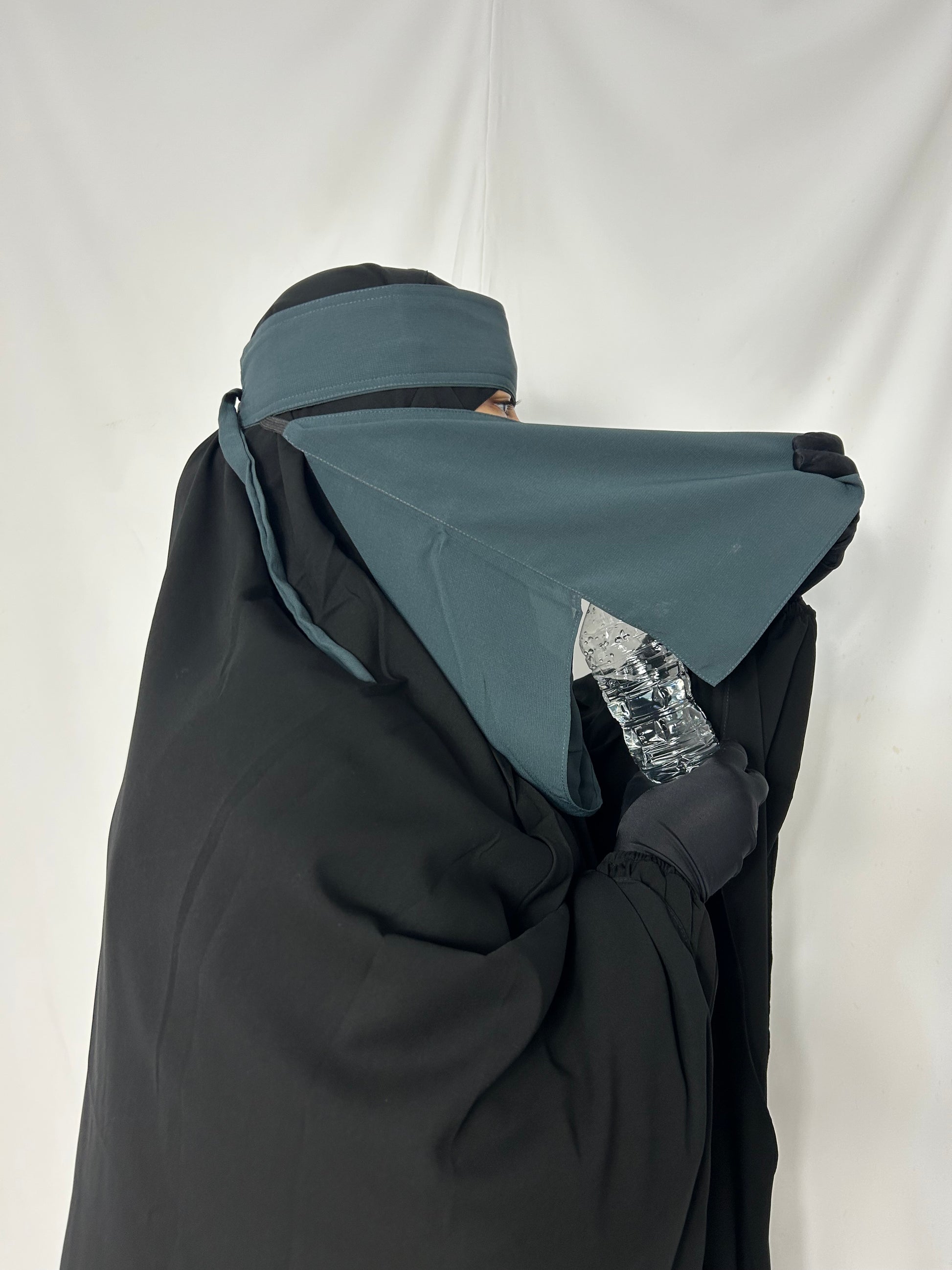 The Easy Eating Niqab is thoughtfully designed with an additional inner layer beneath the main niqab to maintain full privacy and modesty. This innovative design allows the wearer to eat and drink comfortably without the need to remove or adjust the niqab in public. Combining practicality with elegance, the extra layer ensures discreet coverage while offering convenience for everyday use.