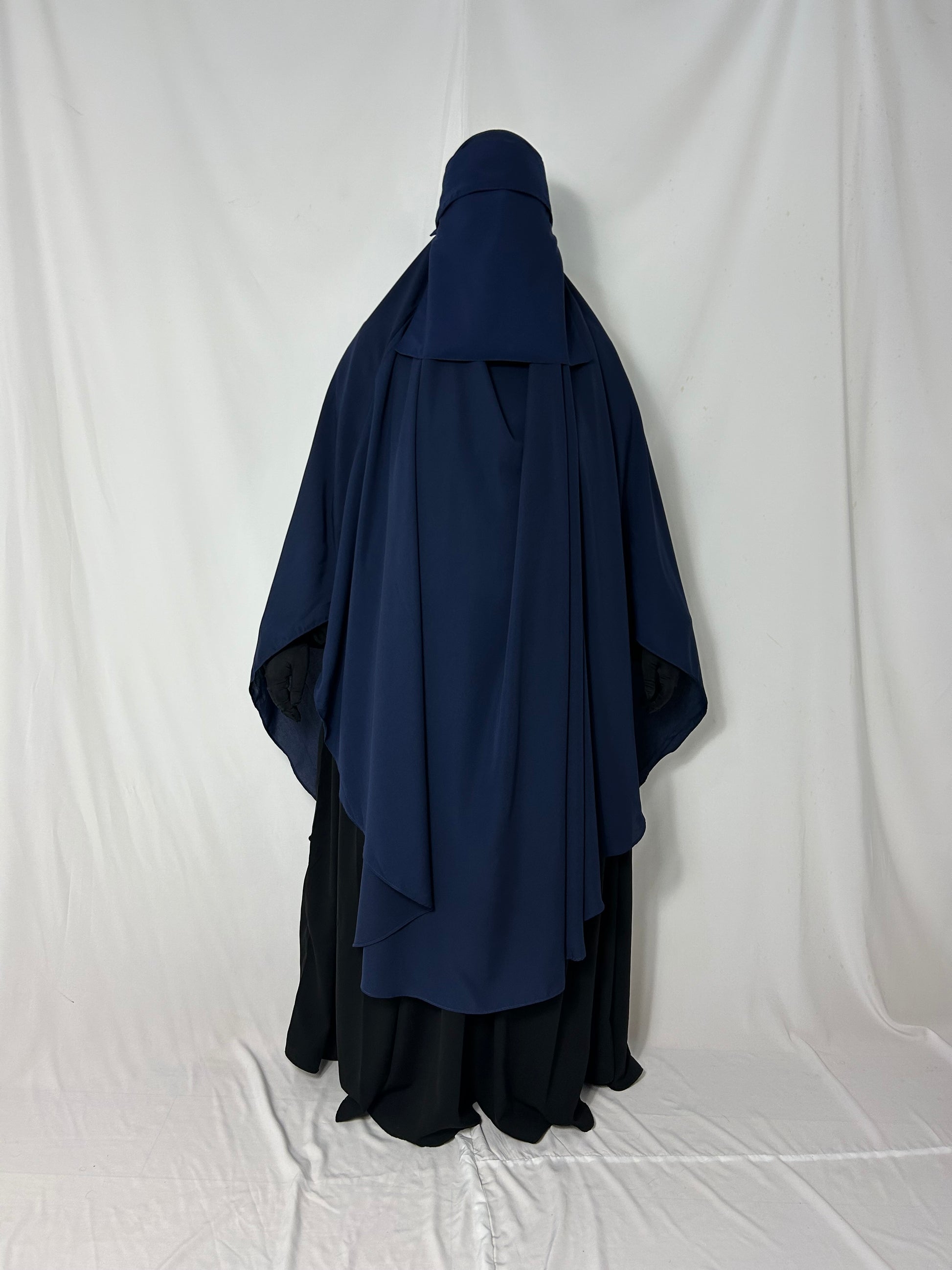 The maxi-length khimar provides generous coverage while maintaining a lightweight, breathable feel, making it ideal for daily wear or special occasions. The matching niqab completes the look with a cohesive, graceful finish.
