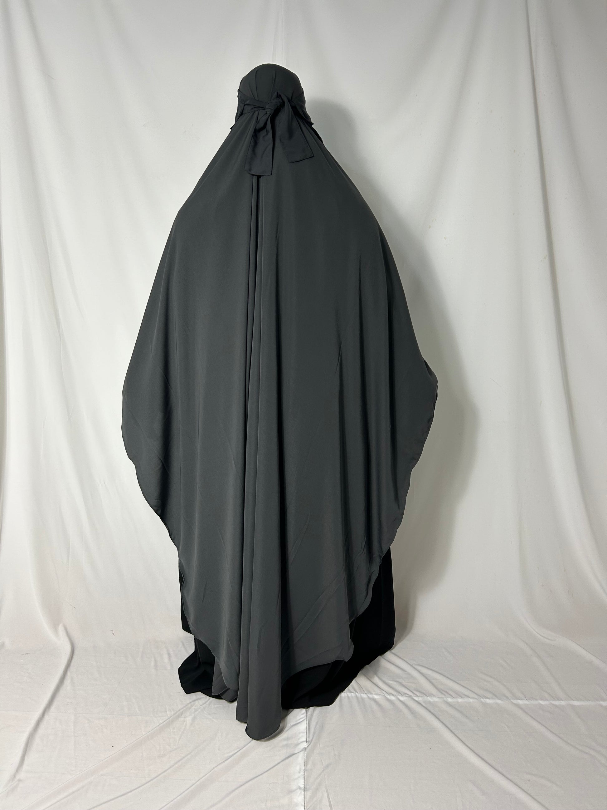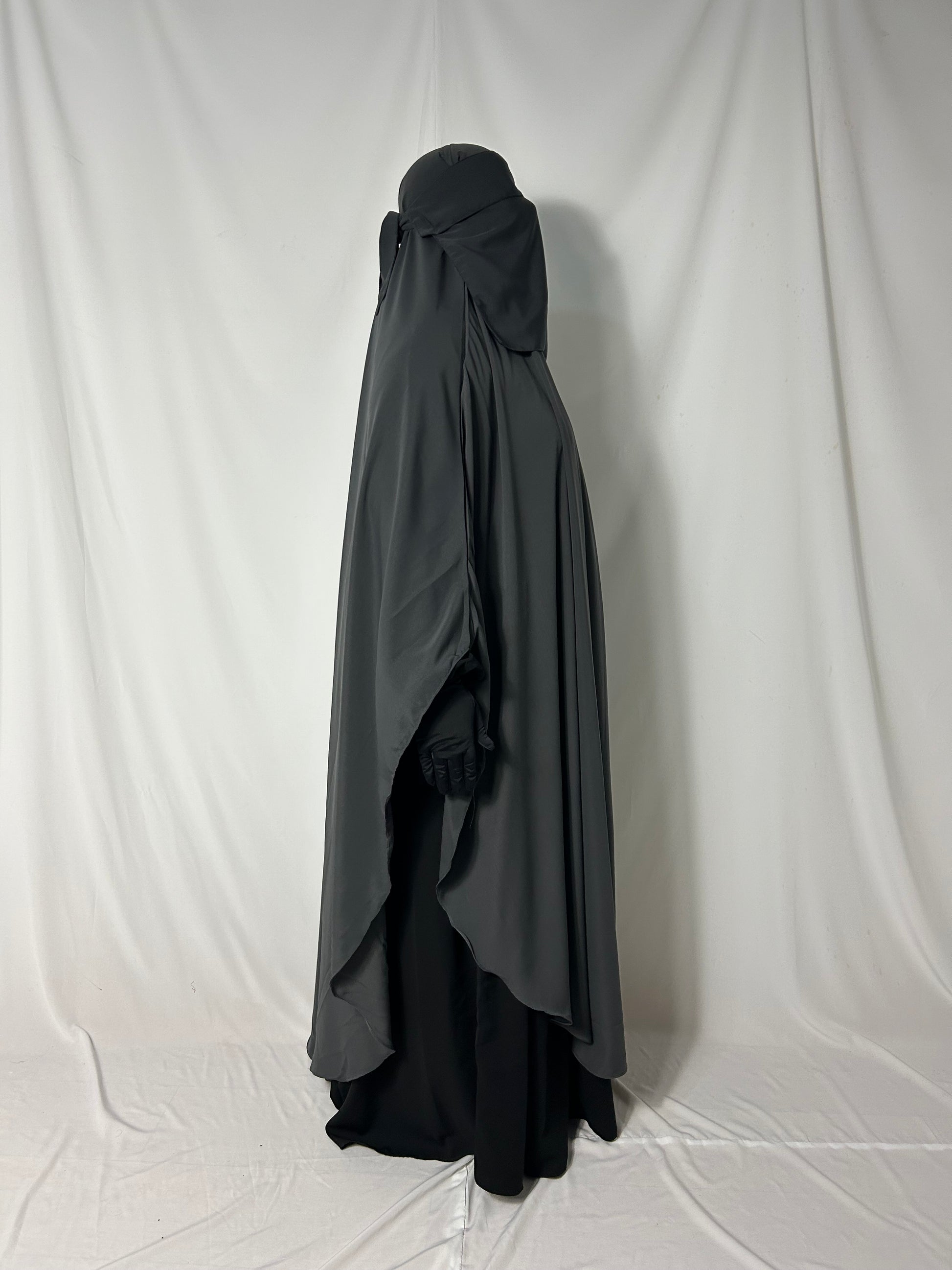 160cm Maxi Khimar With Matching Niqab - Dark Grey