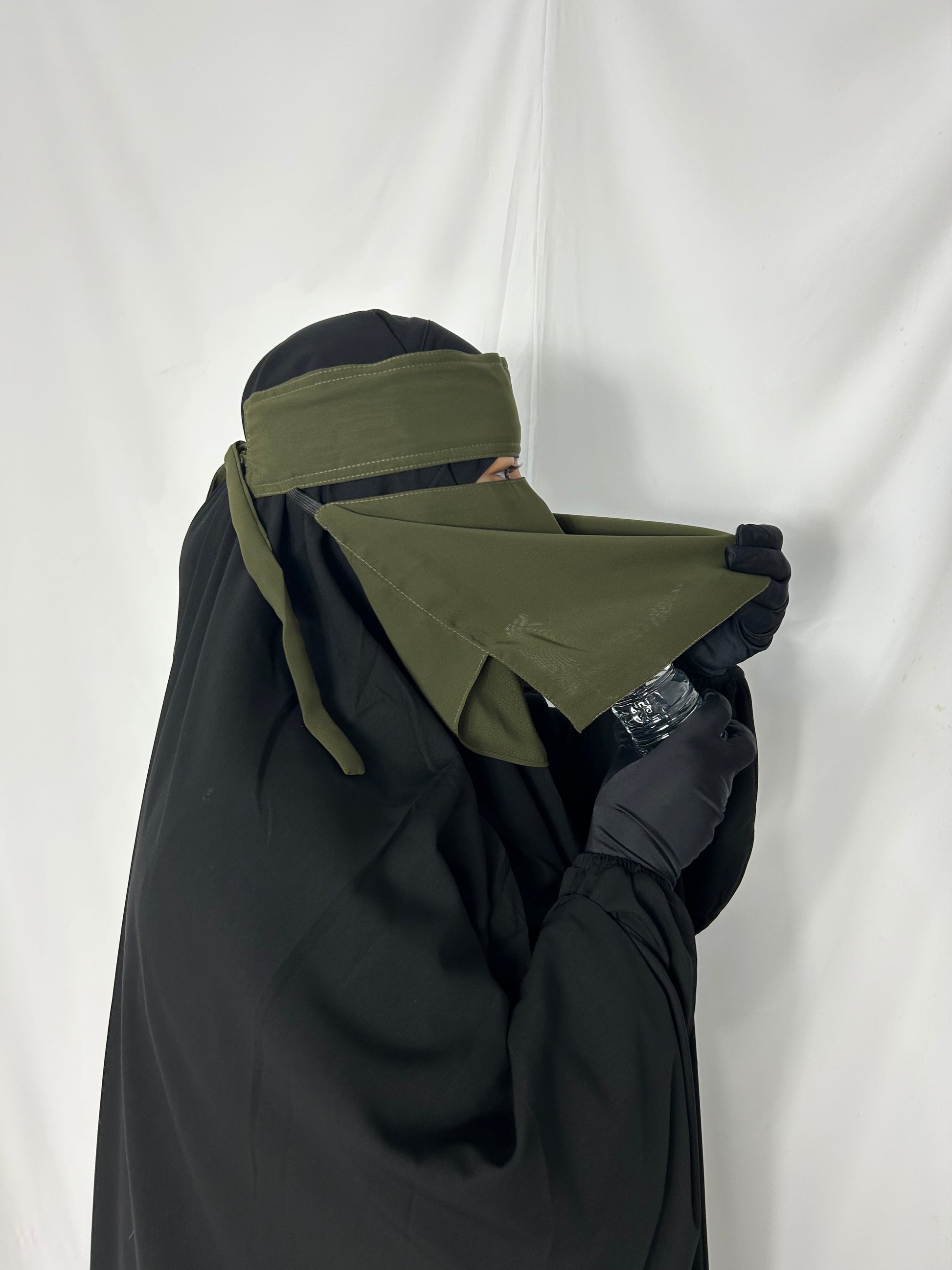 The Easy Eating Niqab is thoughtfully designed with an additional inner layer beneath the main niqab to maintain full privacy and modesty. This innovative design allows the wearer to eat and drink comfortably without the need to remove or adjust the niqab in public. Combining practicality with elegance, the extra layer ensures discreet coverage while offering convenience for everyday use.