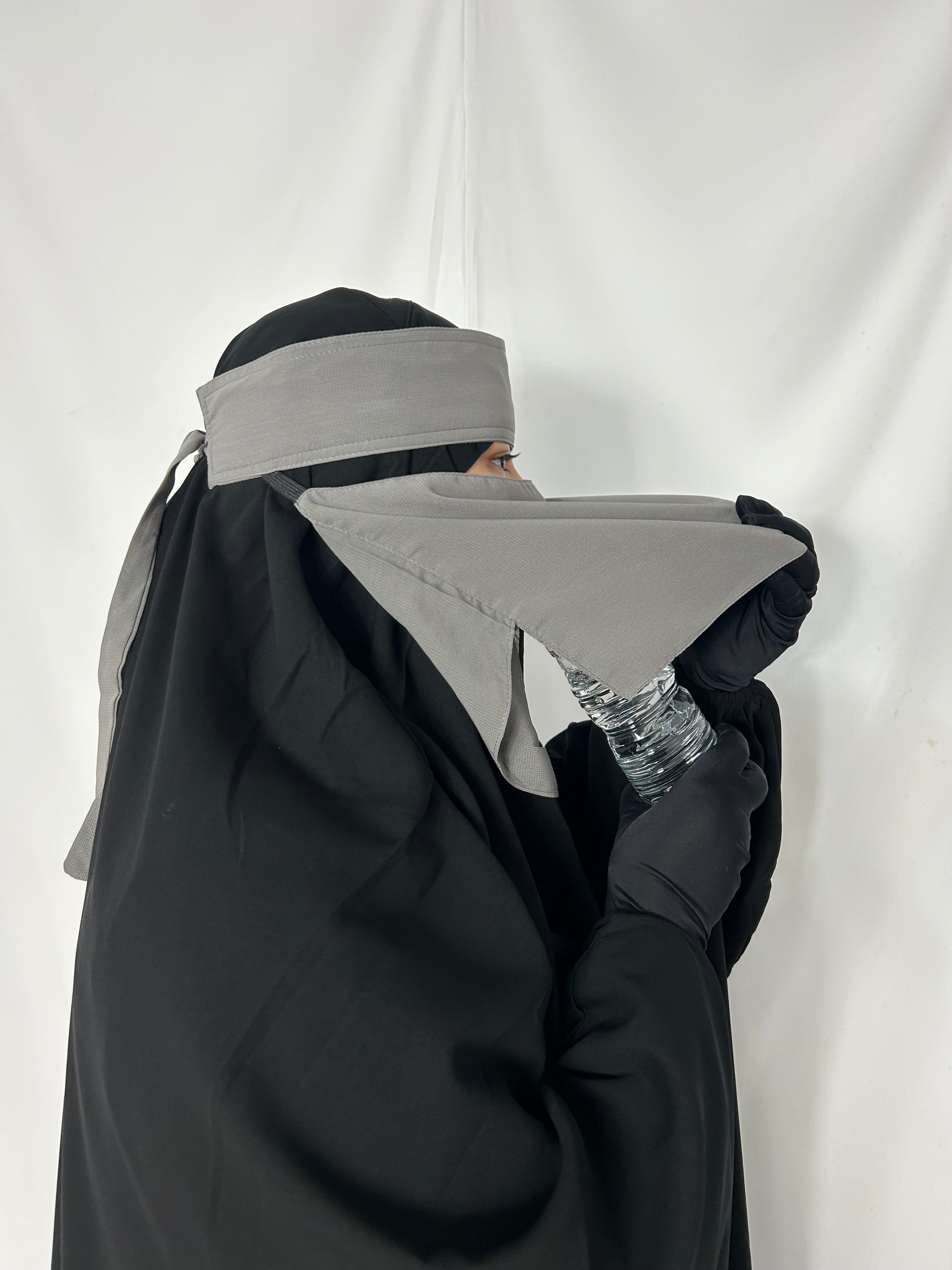The Easy Eating Niqab is thoughtfully designed with an additional inner layer beneath the main niqab to maintain full privacy and modesty. This innovative design allows the wearer to eat and drink comfortably without the need to remove or adjust the niqab in public. Combining practicality with elegance, the extra layer ensures discreet coverage while offering convenience for everyday use.