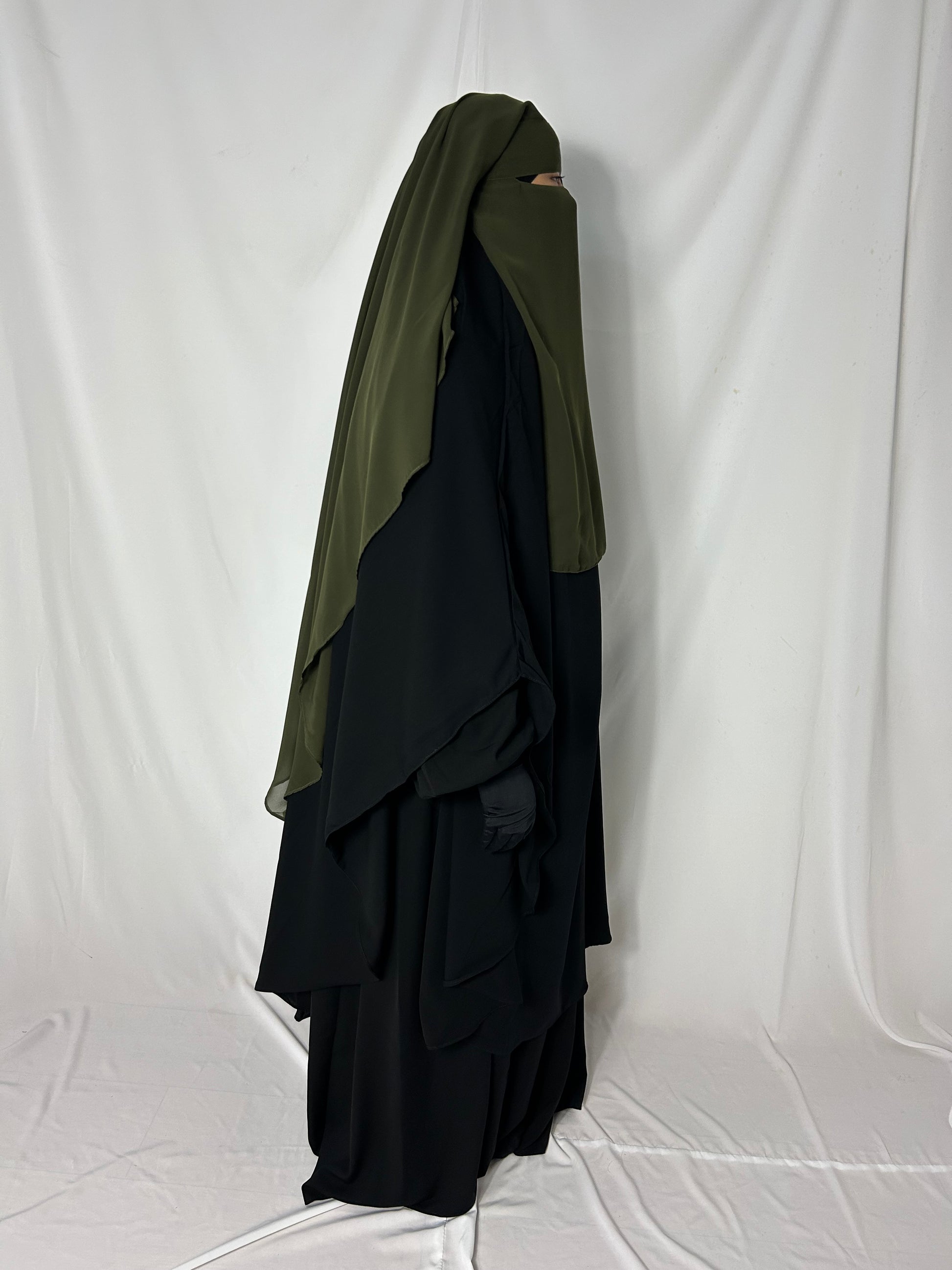 Experience elegance and comfort with our Long Double Layer Niqab, designed for modest coverage and effortless breathability. Made from premium wool chiffon, this niqab drapes beautifully while remaining light and comfortable for everyday wear.