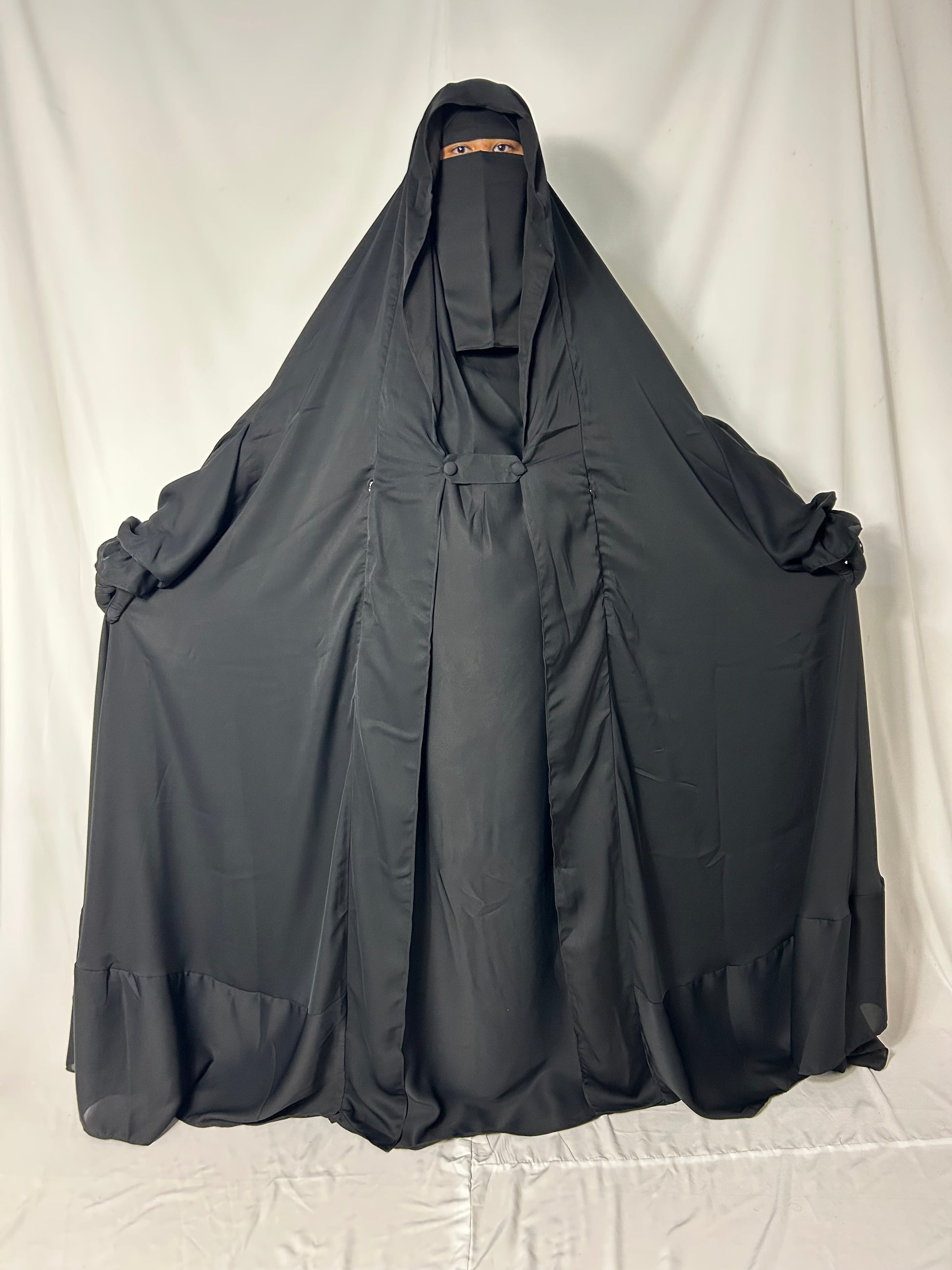Experience effortless elegance and everyday practicality with our Saudi Flap Jilbab, crafted from premium Nidah fabric for a smooth, lightweight, and luxurious feel.