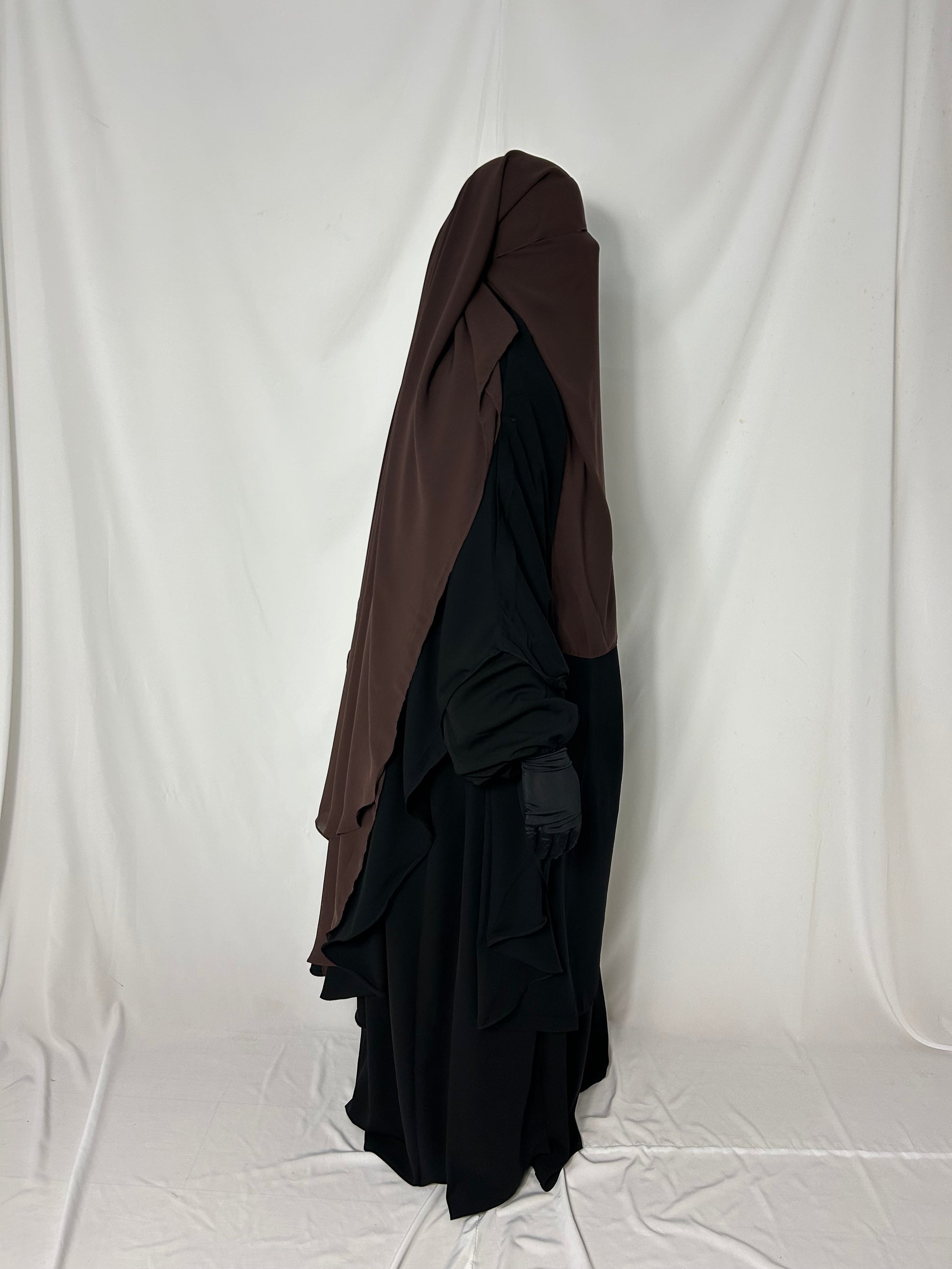 Stay modest and comfortable with our XL Eye-Flap Triple Layer Niqab, made from premium wool chiffon for a soft, breathable feel. The triple-layer design offers full coverage, while the eye flap provides extra privacy without compromising comfort.